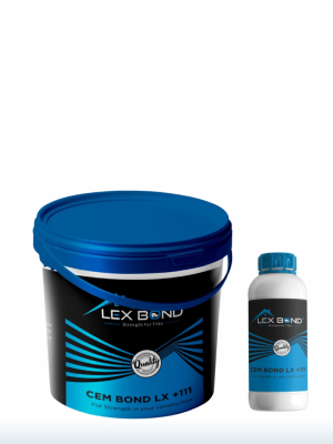 LEXBOND CEM BOND LX+111 Is a specially formulated integral liquid waterproofing compound composed of surface active plasticising agents, polymers & additives. It is used as an additive for cement concrete, mortar & plasters. It makes concrete cohesive and prevents segregation.